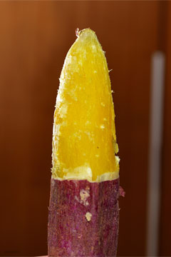 ジャガイモに比べて水分量が少ないため電子レンジも駄目。水に浸してからでも中までは染み込まず、結局は切り刻んで焼いても おいしくならない状態で食べた。