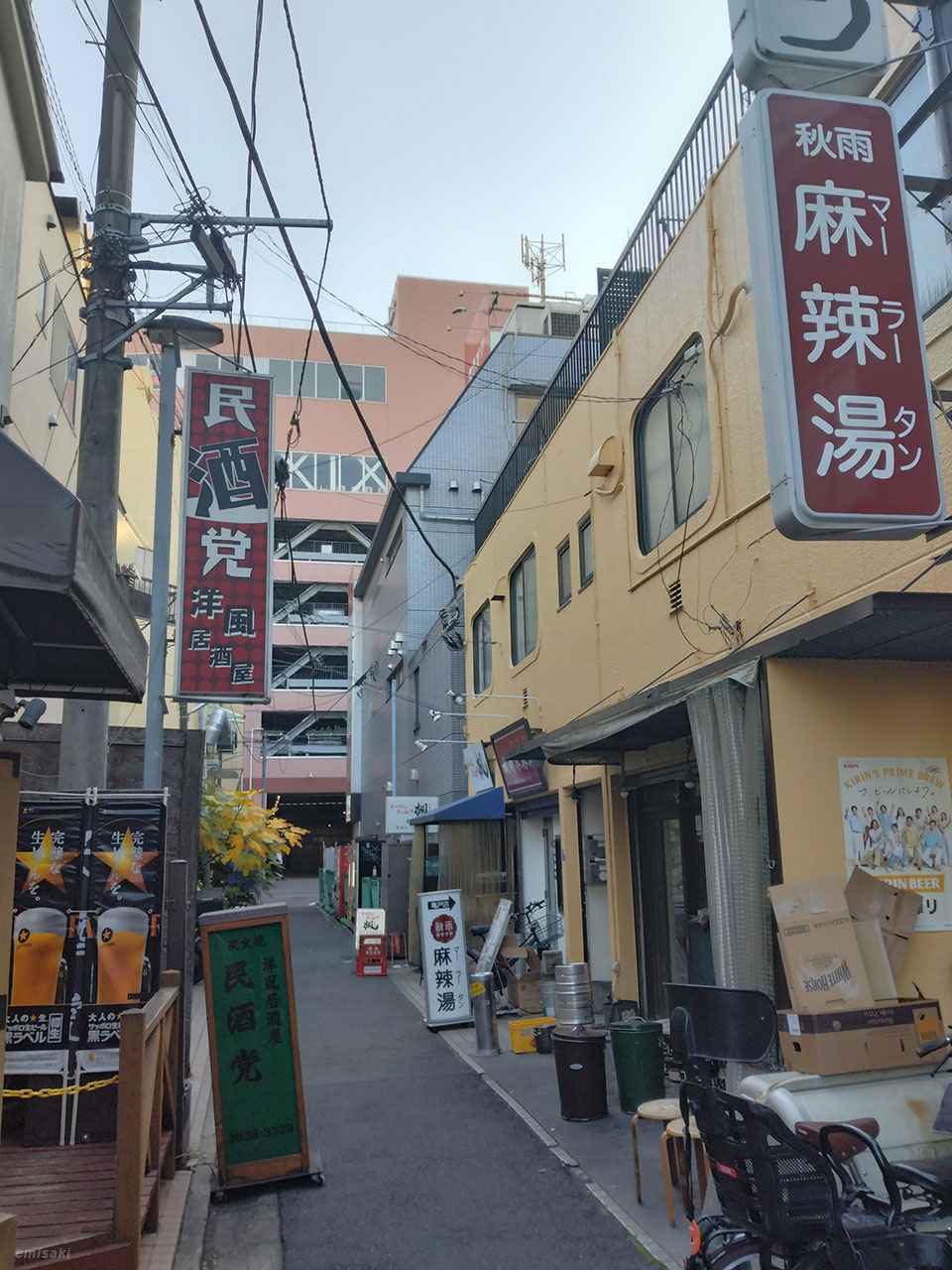 (写真の付近)カメレちゃんちの北側であるが夜の店が建ち並ぶため俺には用が無いから単なる通路である。一般的な路地じゃなく素人さんなら絶対に曲がらない怪しげな路地を入るんだが、ここが商店街の八百屋とか多い場所に抜ける最短コース。ついでに価格調査した。過去には行ってた総菜屋さんも高齢化で閉店しちゃったから久しぶり。