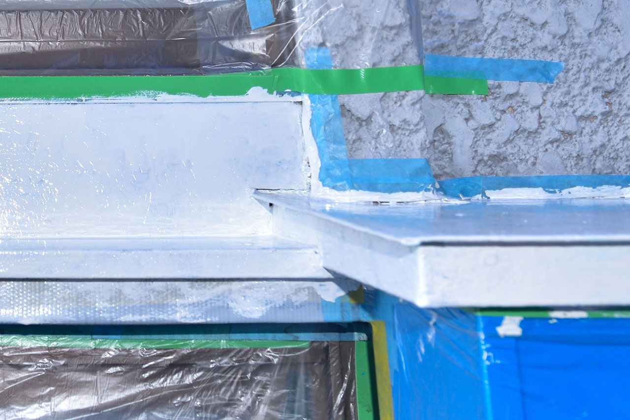 ポリエステルな50mm幅の養生テープも長さ25mなのに4巻は使ってる。ここで示した場所だけじゃなく木材露出部分の防腐剤を塗るため使いまくってきた。