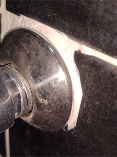 壁面から出る水道管(蛇口)の根元が全く防水されていなかった。水が入り込めるから多くは重力で落下しても一部は水道管に沿って壁の中に入る。これは酷いと上側のみ埋めた。下を埋めなかったのは念のための水抜き。