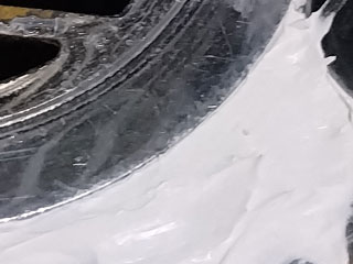 その考え方は今回の作業でも同じ、塗るときヘラで平らにしようとしても粘性がありヘラにまとわりついて平らにはならない。多めに盛り、少し固まってきてから押して平らにした。想定外の失敗もあり、窪みが深かったため3~4日では内部まで固まっていなかった。