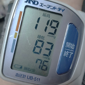 カメラを持ち込めてないが風呂場で測ったら 144-107、心拍数も83という数値が出たが、その計測は最強に寒いと感じてないとき。