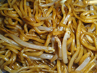もやしでかさ増し。ネット検索で「まずい」と書いてあったんだが十分だと思って調べ直したらトップバリュの焼きそばは近畿と東海と書いてあって関東では売っておらず、トップバリュの麺は「むし中華めん」、こちらは「むし中華めん」で重さも違い、その他添加物に違いもみられた。