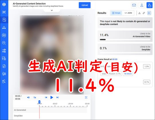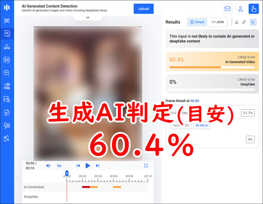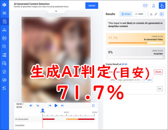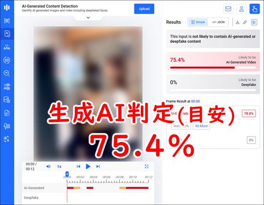 疑惑映像をAI判定にかけてみた結果は以下のようになった。