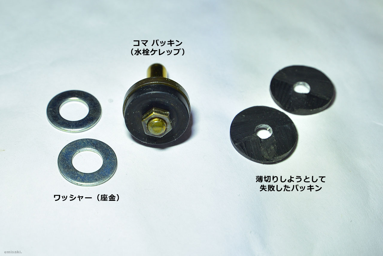 パッキン自体は3個入りで100円程度のため短い年数で交換しても費用はかからないが、強く締め付けないといけないのが面倒だった。強く閉めれば一晩で一滴も垂れないのは確認したが、少しでも弱いとポタポタ垂れてくるから改良は成功。