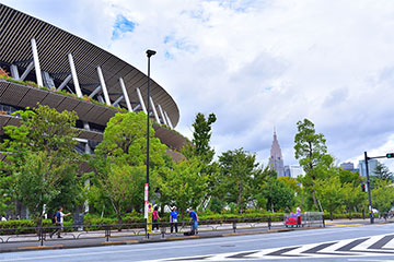 そこで国立競技場にて見てから戻ってくるまでに時間の稼げる都庁まで行けるかを考えた。新宿御苑からは木々があり見えないことが判明。だからって街中はビルだらけでもっと見えない。千駄ヶ谷駅前だが9月12日(金)、たまにタクシーが通ったが9月13日(土)には全くいなかった。配車サービスを利用して準備しておくしかない。徒歩移動できる範囲に見通しが良い場所は見当たらなかった。