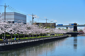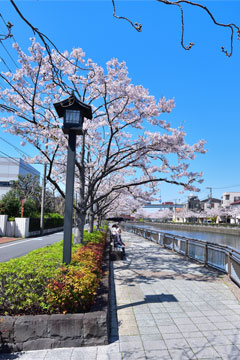 こちらは平成19年(2007)から平成26年(2014)に耐震護岸・遊歩道整備が完了 桜の木はまだ若い